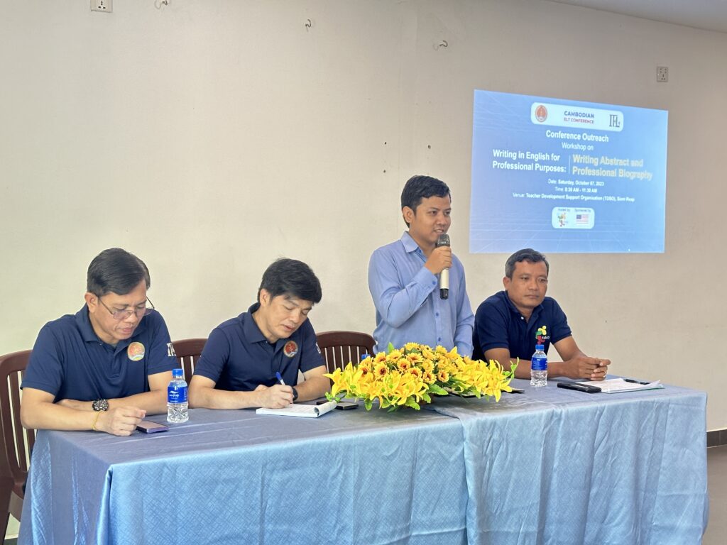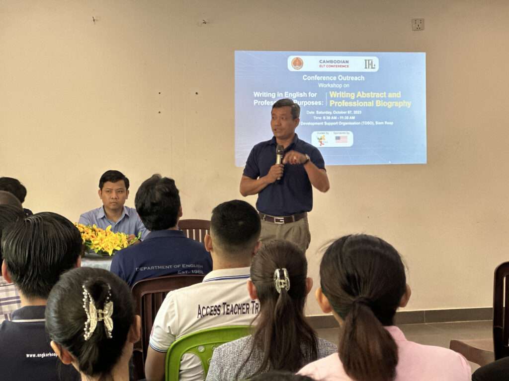 On Saturday, October 7, 2023, the TDSO – Teacher Development Support Organization and the Royal University of Phnom Penh IFL Department of English Cambodian ELT Conference, co-hosted the Conference Outreach workshop on “Writing in English for Professional Purposes: Writing Abstract and Professional Biography.”