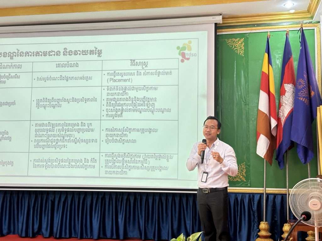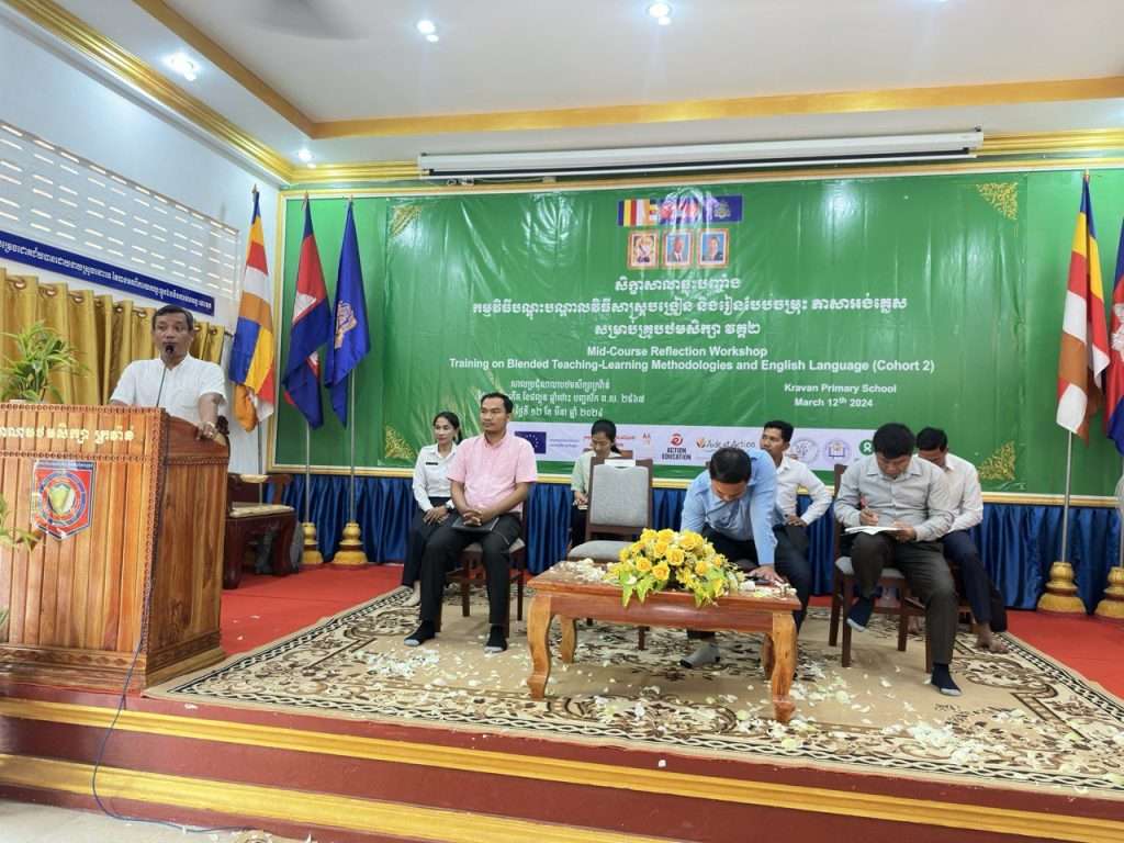 In alignment with this vision, TDSO – Teacher Development Support Organisation, in partnership with Aide et Action Southeast Asia, recently conducted a mid-course evaluation for the English for Public Primary School Teachers Program (Cohort 2). Held at Kravan Primary School on March 12, 2024, the workshop garnered a remarkable turnout of 73 participants. Among them are the Deputy Chiefs of Prasat Bakong and Pouk Districts, District Youth and Sports Office representatives, principals from 49 targeted schools, EPST trainee representatives, and our partner, Kampuchea Action to Promote Education KAPE.