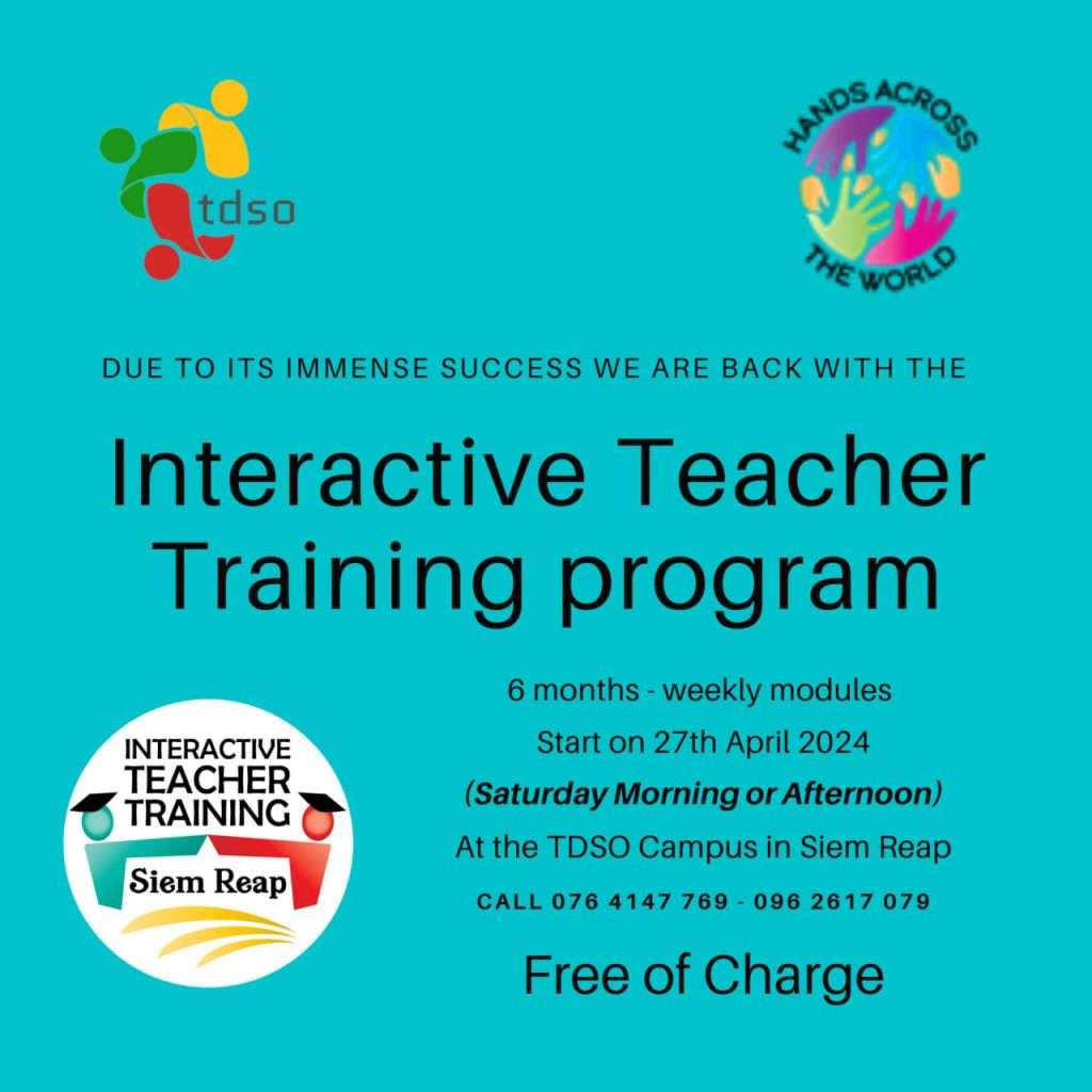 It will start on the 27th of April and continue till the end of September 2024, every Saturday morning or afternoon. The workshops will be held at the TDSO campus in Siem Reap.