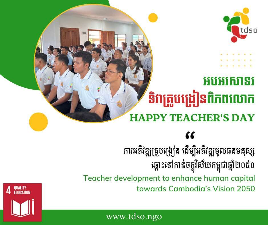 Happy International Teachers’ Day! Today we celebrate the heroes who shape our future—teachers! Their dedication, passion, and tireless efforts inspire generations of learners. TDSO proudly stands with the MoEYS Cambodia to honor Cambodia’s educators. This year’s theme, ‘Teacher development to enhance human capital towards Cambodia’s Vision 2050,’ highlights our commitment to empowering teachers as key drivers of national progress. Join us in