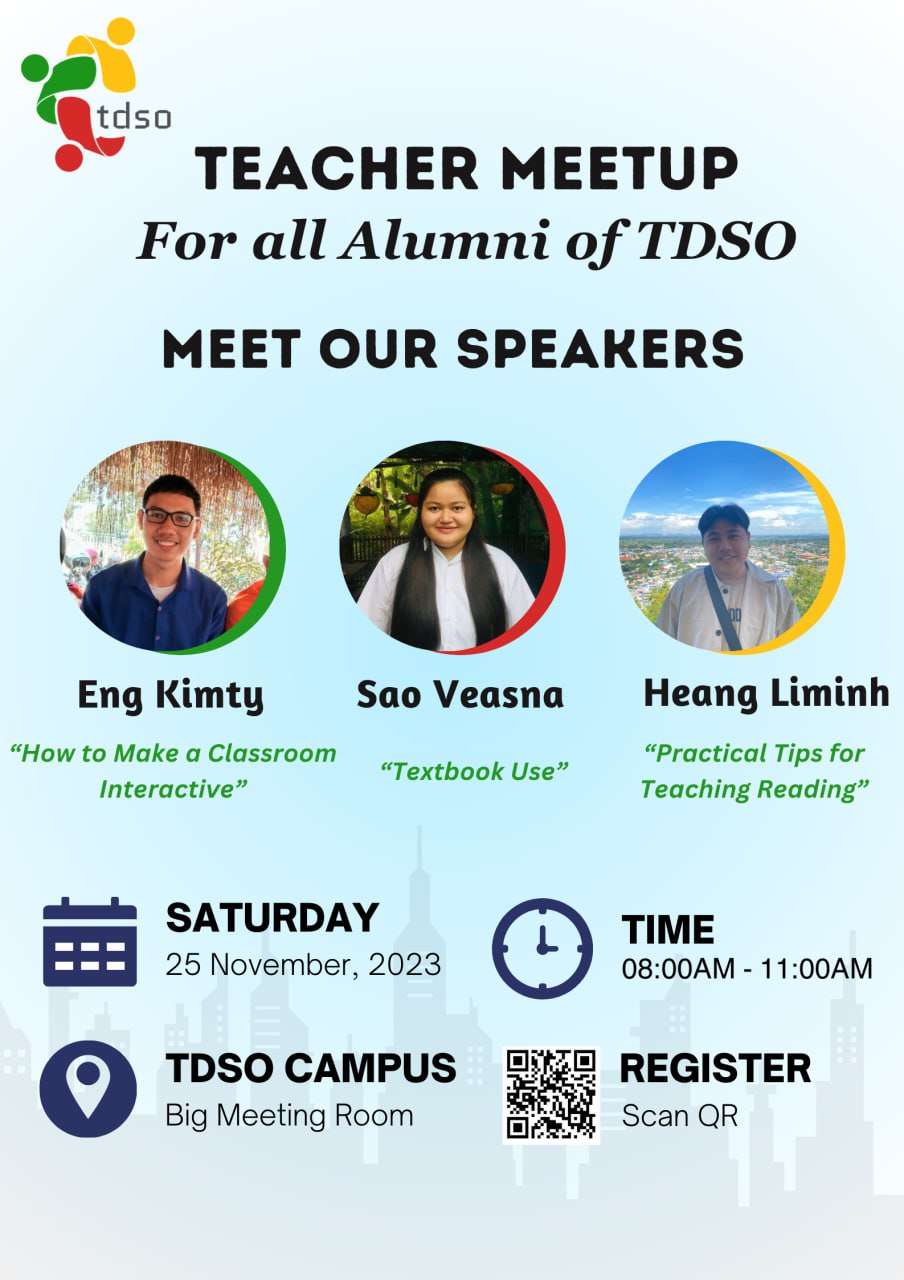 On Saturday, November 25 from 08:00 till 11:00 Teacher Meetup for alumni of TDSO courses Location : TDSO Campus in Siem Reap Limited seats Registration