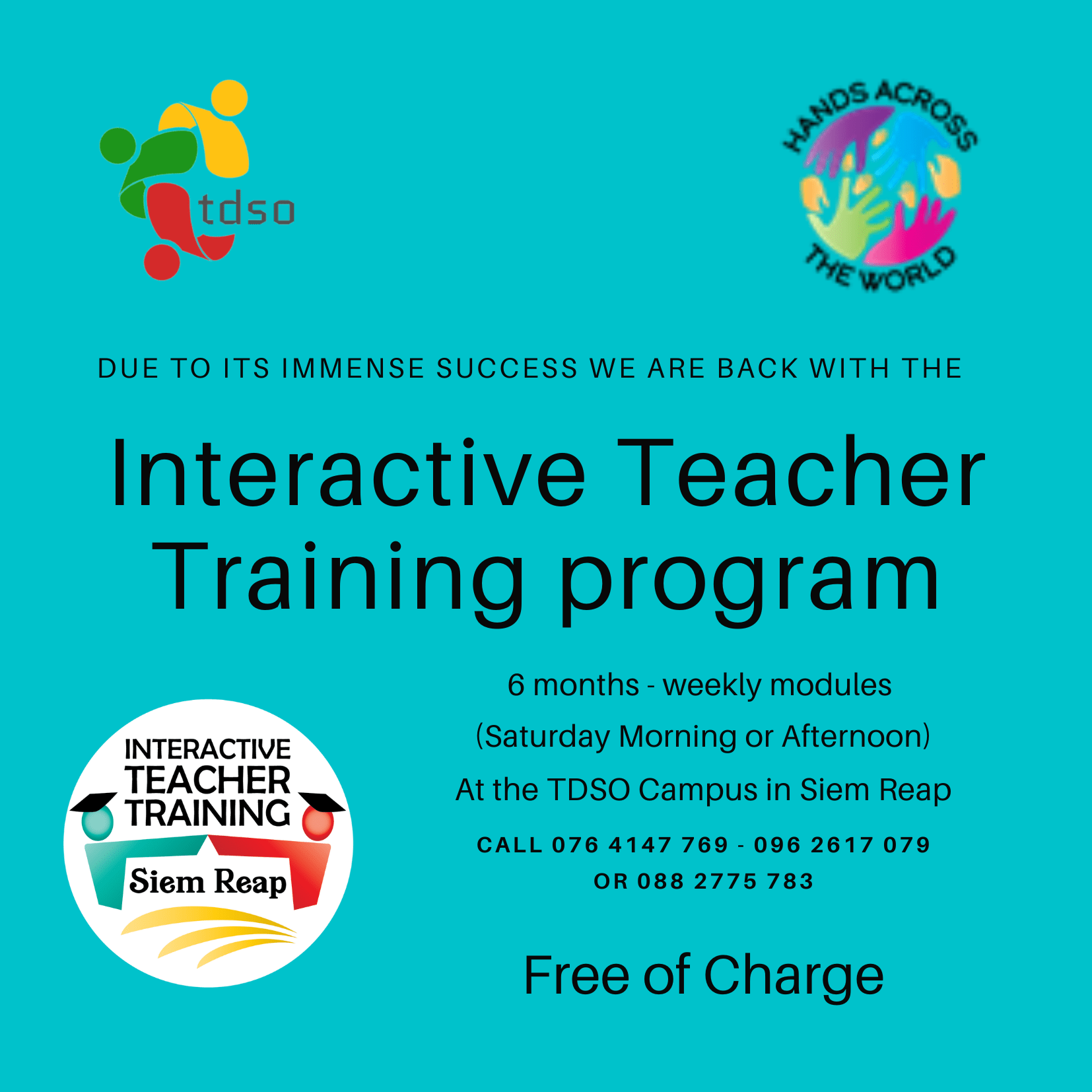 If you are an early career English Teacher and want to improve your teaching skills significantly you are welcome to this program. It will start on the 21st of October and will continue till the end of March 2024, every Saturday morning or afternoon. The workshops will be held at the TDSO campus in Siem Reap. The first group will