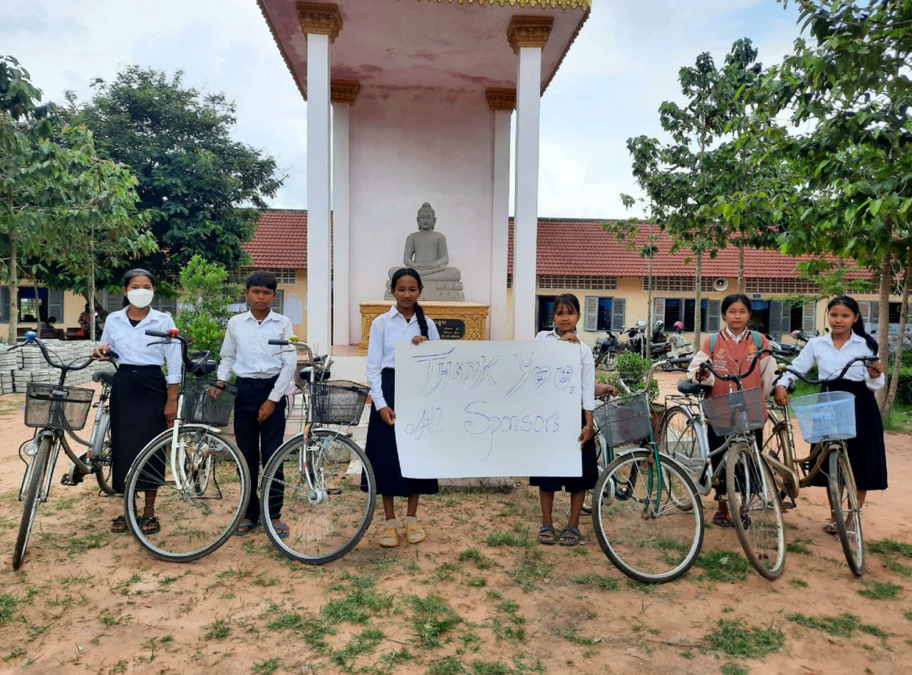 From January till mid-May, a group of Belgian trainees were active as team teachers at TDSO. During their stay, they bought a simple bicycle for daily use. Once their internship terminated, they decided to donate these bicycles to students of a secondary school in Puok. For these students, having a bike or not means being able to attend school every