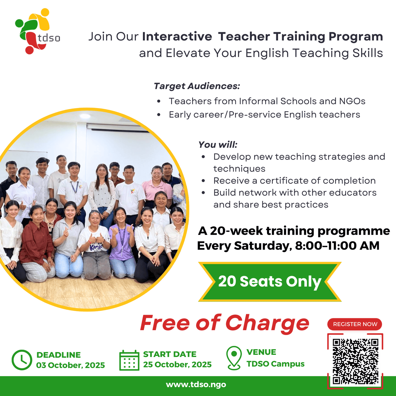 Whether you’re an aspiring teacher seeking foundational training or a seasoned educator striving to enhance your pedagogical practices, TDSO is your steadfast professional development partner. Together, we can shape the future of education in Cambodia, inspiring future generations and addressing the critical gaps in the country’s educational system.