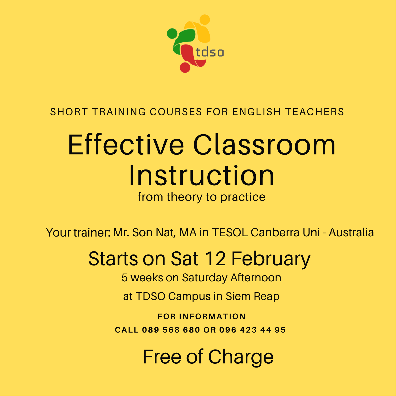 You are kindly invited to attend this FREE teacher training course, which will take place on Saturdays February 12, 19, 26, and March 5, 12 from 14.00 till 17.00 am IT IS NOT ONLINE For information call 089 568 680 or 096 423 44 95 Number of seats strictly limited. The trainer for this course is Mr Son Nat,